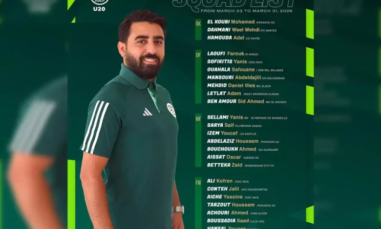 Le sélectionneur national des moins de 20 ans (U20), Razik Nedder, a convoqué 24 joueurs en prévision des deux matchs amicaux face à son homologue égyptienne au Caire, prévus les 28 et 31 30 mars au Caire (Egypte), a annoncé la Fédération algérienne de football (FAF) sur son site officiel.