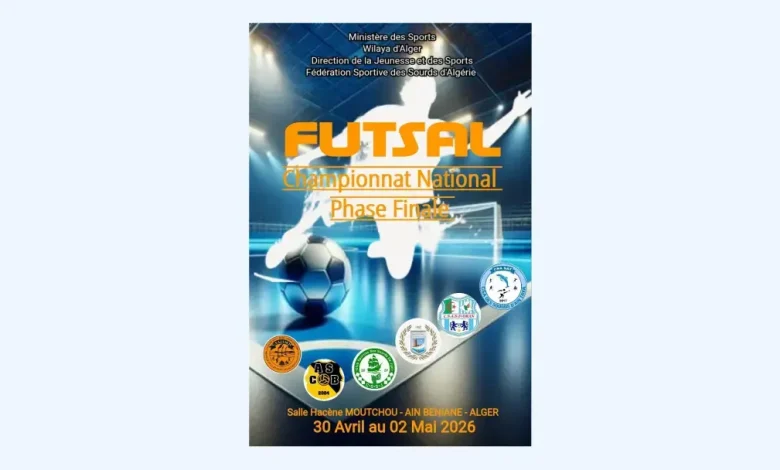 La phase Finale du Championnat National de Futsal pour Sourds se déroulera du 30 avril en cours au 02 mai prochain à la salle Omnisports « Hacène Moutchou » à Ain Benian (Alger), a-t-on appris, dimanche, auprès de la Fédération Sportive des Sourds d’Algérie.